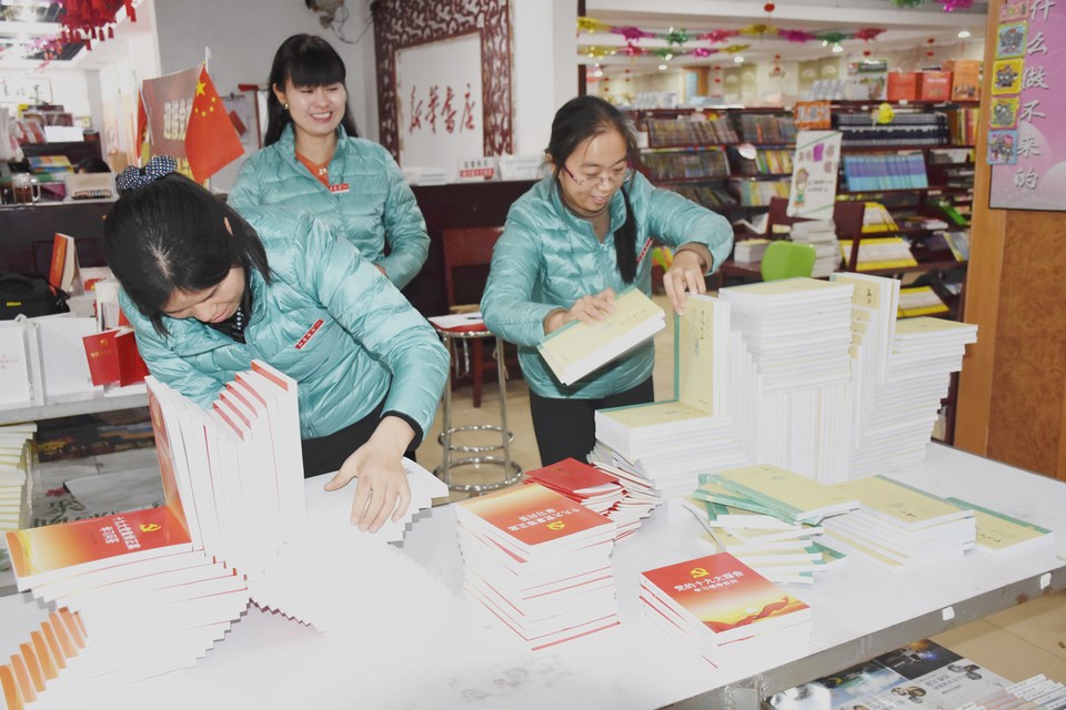 日前,睢縣縣店中心圖書超市職工緊抓十九大圖書銷售熱潮,充分利用業(yè)余時間苦練圖書錄入、打包、造型等基本功,營造更加美好的購書環(huán)境和貼心服務(wù),同時開展熱線訂購,送書上門等活動,高效率、高質(zhì)量服務(wù)好各個階層讀者用書。