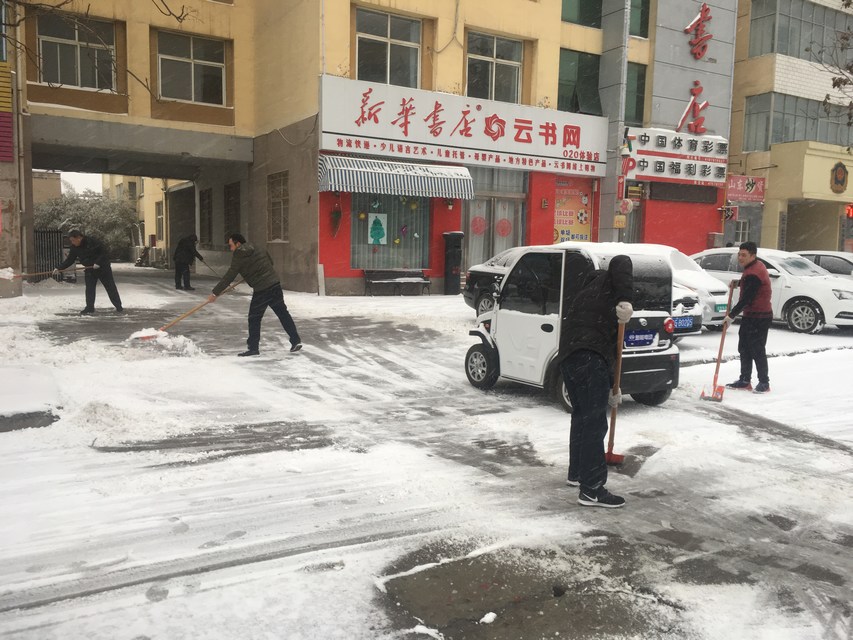 衛(wèi)輝市店員工積極清掃路面積雪