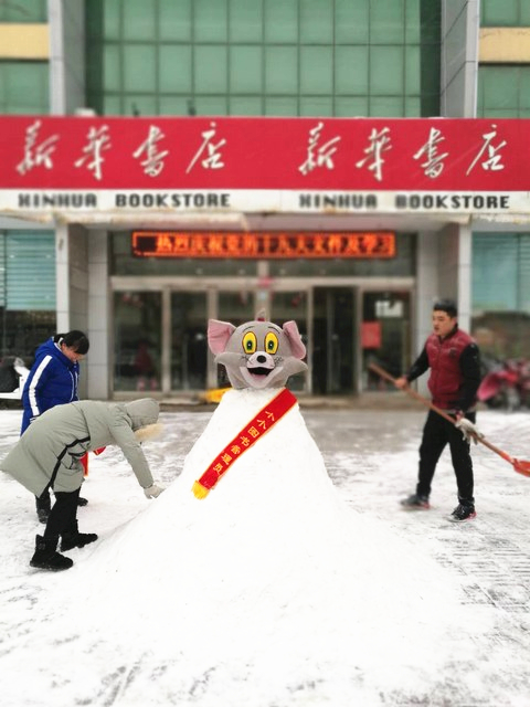進(jìn)入冬季,衛(wèi)輝市店時(shí)刻關(guān)注天氣變化提前備好掃把、鏟雪板等相關(guān)掃雪工具,通知全店各部門(mén)提前做好雨雪天氣應(yīng)急方案。1月4日清晨,2018年的第一場(chǎng)大雪已將路面覆蓋,一大早,書(shū)店職工自發(fā)組織清理中心門(mén)市部的路面積雪,把積雪堆成卡通雪人,喜迎顧客光臨。