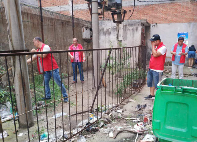 全體黨員志愿者身著紅馬甲,組織有序,分工明確,有的手拿撿拾器和塑料袋,對小區(qū)綠化帶、地面雜物和衛(wèi)生死角進行了清潔打掃有的手拿小鐵鏟對粘貼在墻上的小廣告進行了清除,有的推著小車將樓道內(nèi)的雜物運走。時值盛夏,烈日當頭,氣溫達到36度以上,志愿者們被熱浪包圍,汗水濕透了衣衫,卻沒有一個人放松懈怠,大家不怕臟,不怕累,干勁十足,毫無怨言。一個多小時后,在志愿者們齊心協(xié)力下,將小區(qū)打掃的煥然一新,徹底解決了小區(qū)存在的臟、亂、差問題,居民們紛紛點贊。