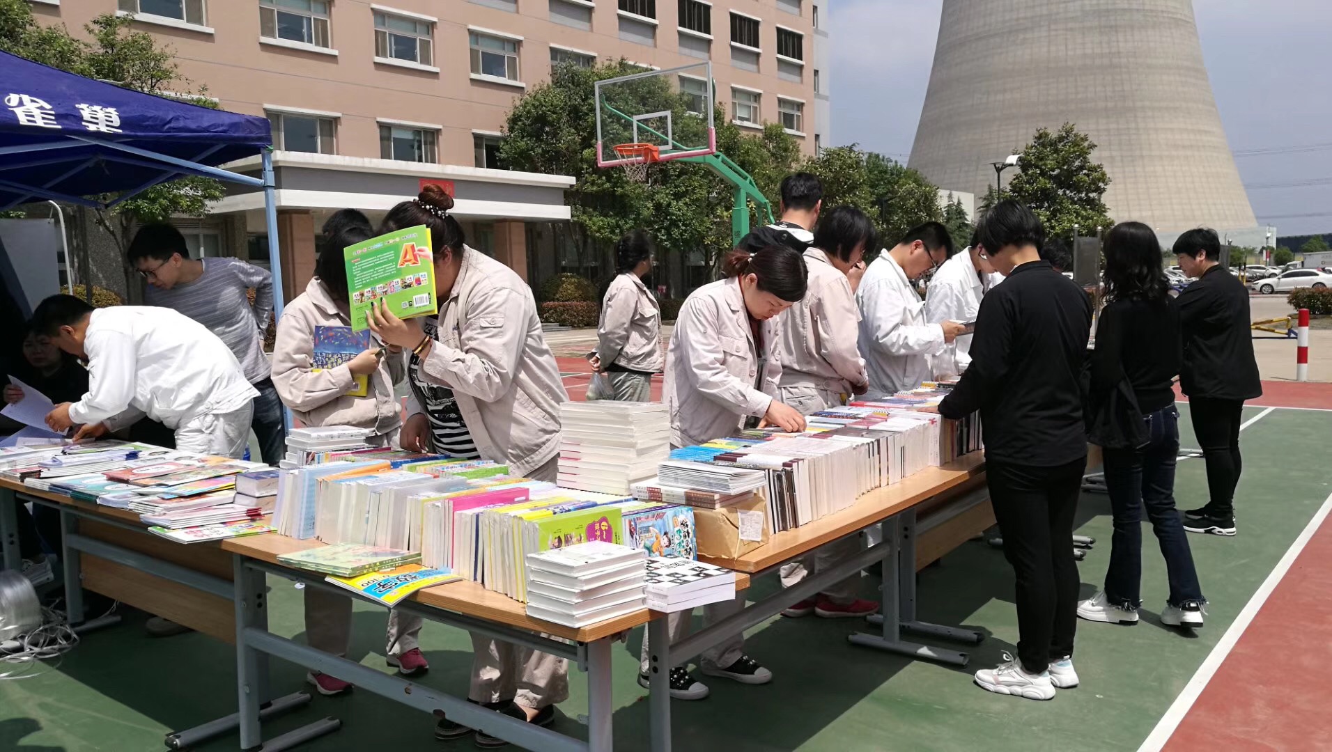在白鶴鎮(zhèn)的華陽(yáng)電廠內(nèi),新華書(shū)店同志們一大班人馬把一家小書(shū)店搬進(jìn)廠區(qū),職工們?cè)趲浊в鄡?cè)的書(shū)籍花園中暢游,大家相互交流,相互推薦,享受著書(shū)籍帶來(lái)的精神愉悅,在大好春光中讓閱讀來(lái)充實(shí)自己,讓書(shū)籍來(lái)陪伴自己。