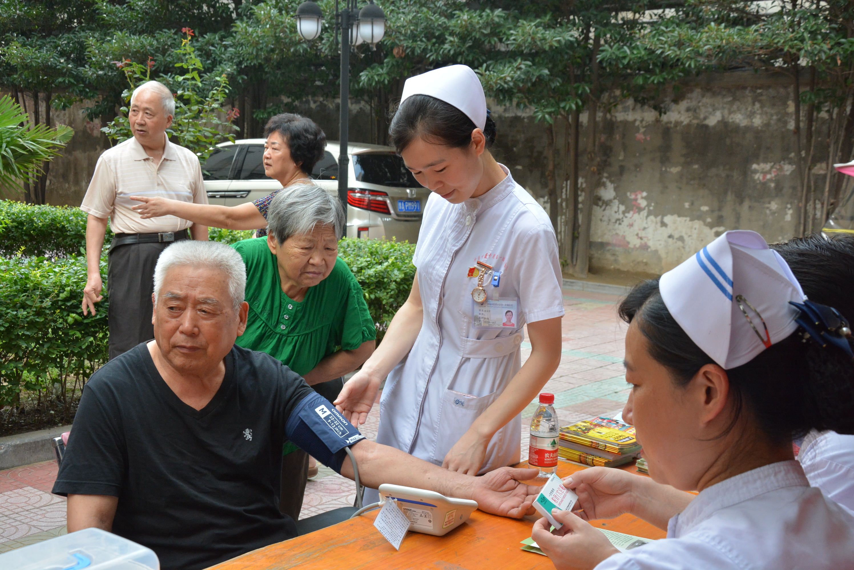 義診活動(dòng)現(xiàn)場(chǎng),在醫(yī)務(wù)人員準(zhǔn)備工作就緒之前,已經(jīng)有不少提前得知消息的大爺大媽在家屬院樓下排隊(duì)候診,有幾位老人還是坐著輪椅過來的。對(duì)這樣送上門的免費(fèi)診療服務(wù),大爺大媽們內(nèi)心充滿了期待。