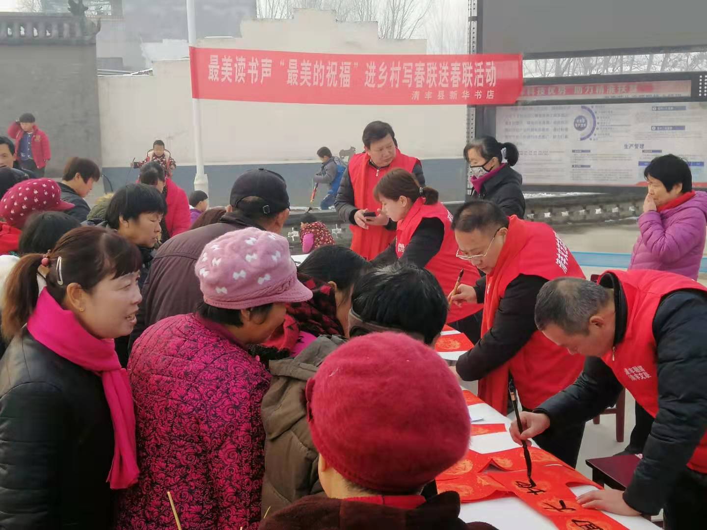 1月17日下午,清豐縣新華書店邀請(qǐng)清豐縣文聯(lián)書畫名家到大流鄉(xiāng)劉圈村開展“最美的祝福”迎新年寫春聯(lián)送春聯(lián)活動(dòng)。