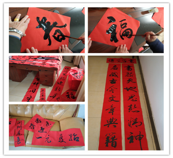 1月16日,原縣委宣傳部副部長(zhǎng)楊保明和縣書法家協(xié)會(huì)理事一同來(lái)店節(jié)前看望問(wèn)候,大家對(duì)新華書店在本縣文化宣傳中弘揚(yáng)正能量,發(fā)揮部門重要作用表示十分贊賞,借此2020年農(nóng)歷春節(jié)來(lái)臨之際,揮毫潑墨,為單位和店內(nèi)職工義寫春聯(lián),送祝福,贏得了大家的感激和欣喜。