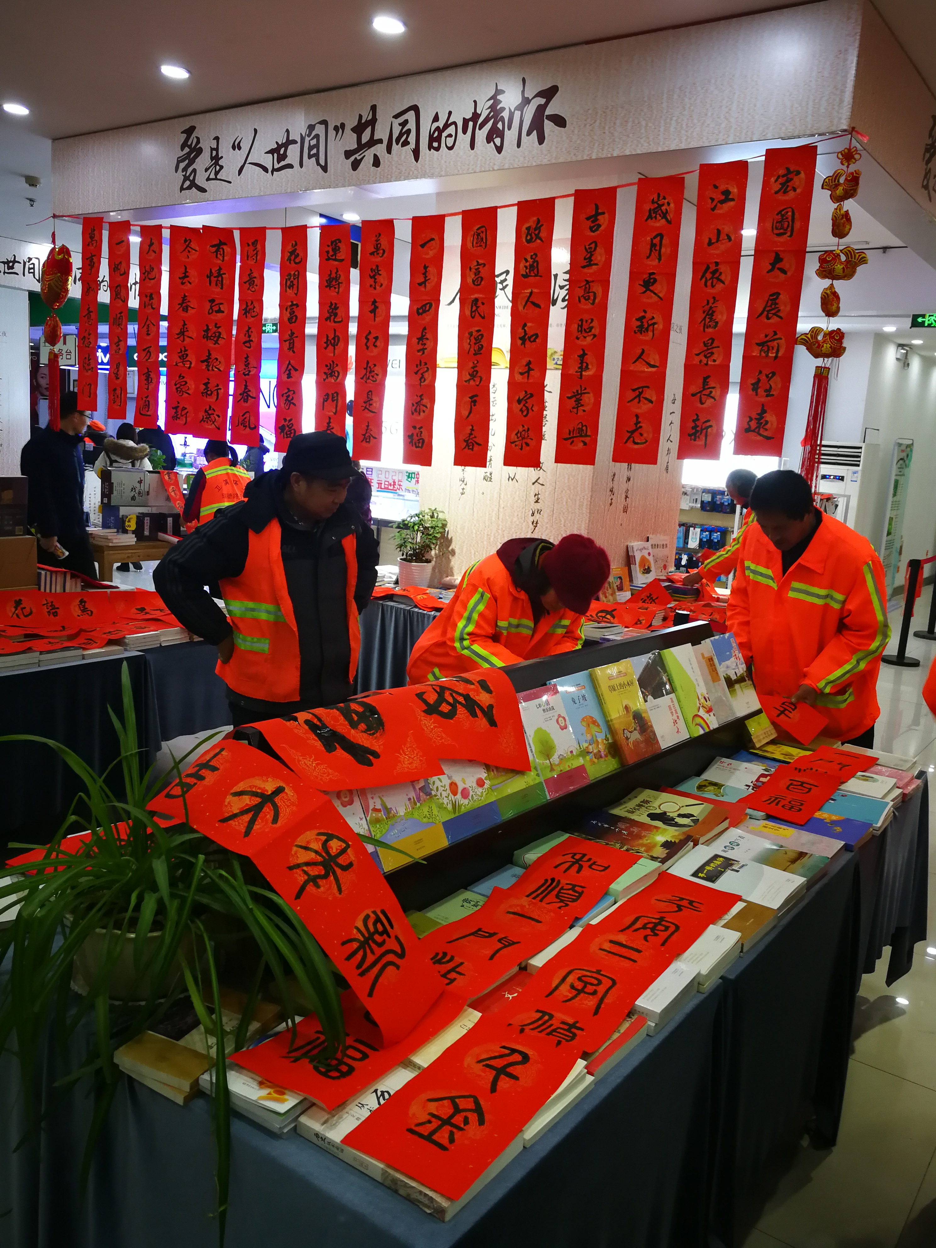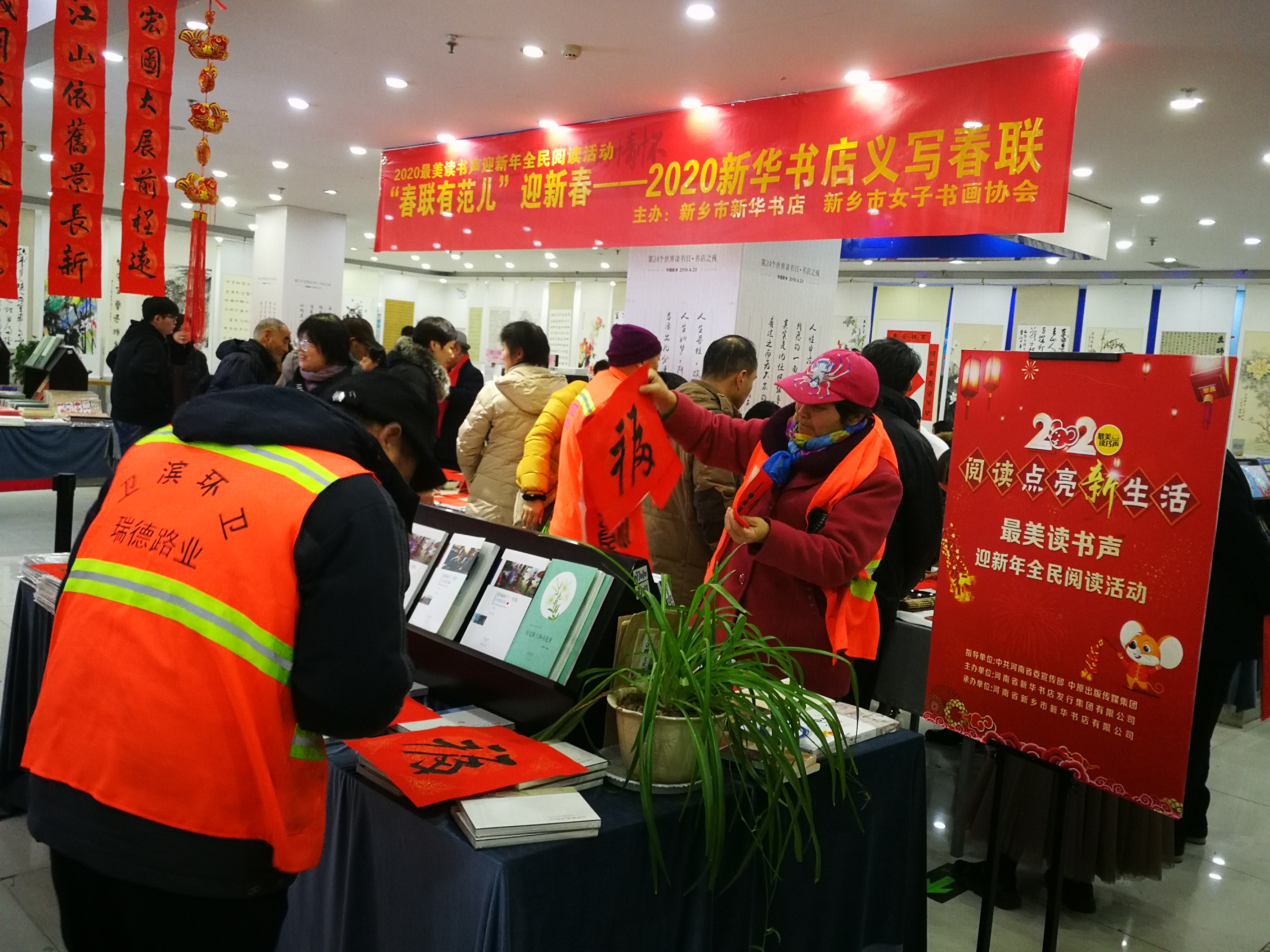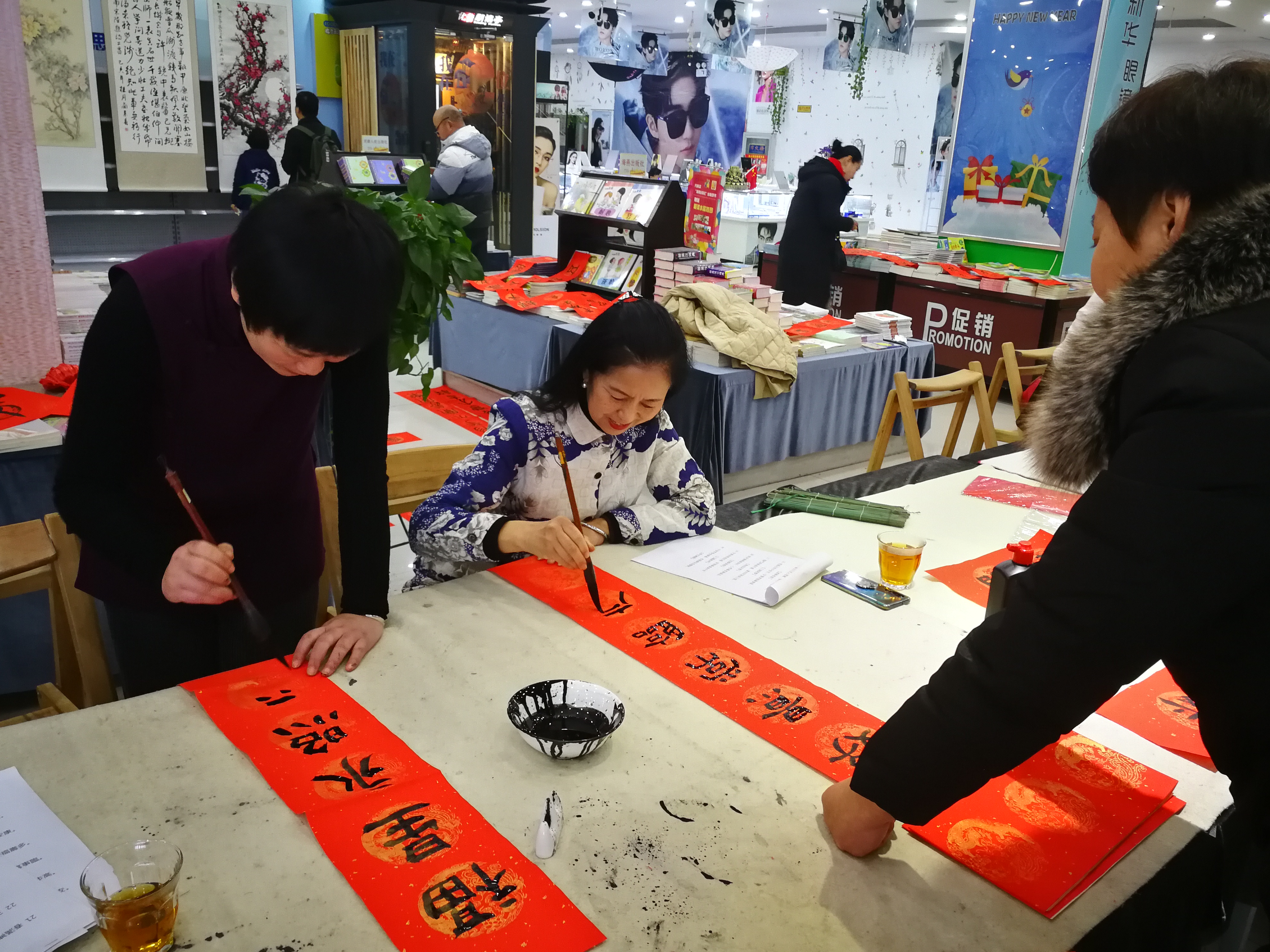 元月12日,新鄉(xiāng)市店在購(gòu)書(shū)中心舉辦了“春聯(lián)有范兒”為主題的新鄉(xiāng)市女子書(shū)畫(huà)家協(xié)會(huì)義寫(xiě)春聯(lián)活動(dòng);顒(dòng)共邀請(qǐng)了新鄉(xiāng)市十余名女性書(shū)法家現(xiàn)場(chǎng)為讀者義務(wù)書(shū)寫(xiě)并贈(zèng)送春聯(lián)活動(dòng),當(dāng)天購(gòu)書(shū)讀者憑小票均可領(lǐng)取一份包含墨香和祝福的春聯(lián),同時(shí),貧困職工、勞模、環(huán)衛(wèi)工人均可優(yōu)先領(lǐng)取書(shū)法家手寫(xiě)春聯(lián)一副。據(jù)了解,活動(dòng)當(dāng)天,來(lái)自新鄉(xiāng)市女子書(shū)畫(huà)家協(xié)會(huì)的書(shū)法愛(ài)好者現(xiàn)場(chǎng)揮毫潑墨,共計(jì)送出福字170余幅,春聯(lián)300余對(duì)兒,為廣大市民送去屬于新華人的新春祝福。