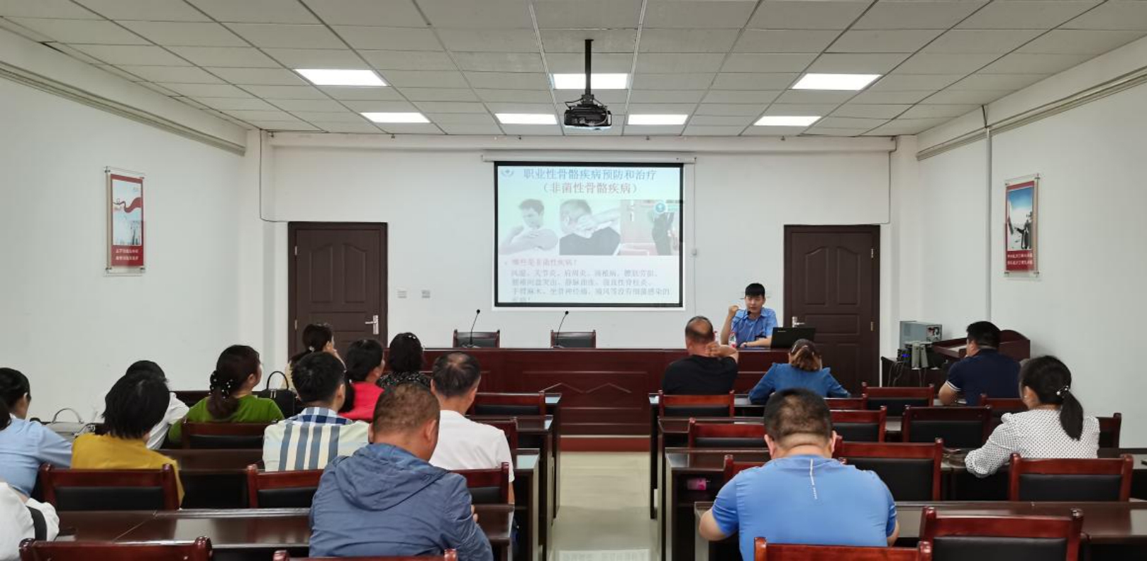 授課過程中,侯老師從衛(wèi)生安全突發(fā)性事故及突發(fā)急癥的院外自救呼救知識、中醫(yī)養(yǎng)生保健知識及職業(yè)病常見病預(yù)防、職工心理健康等方面進行詳細講解。