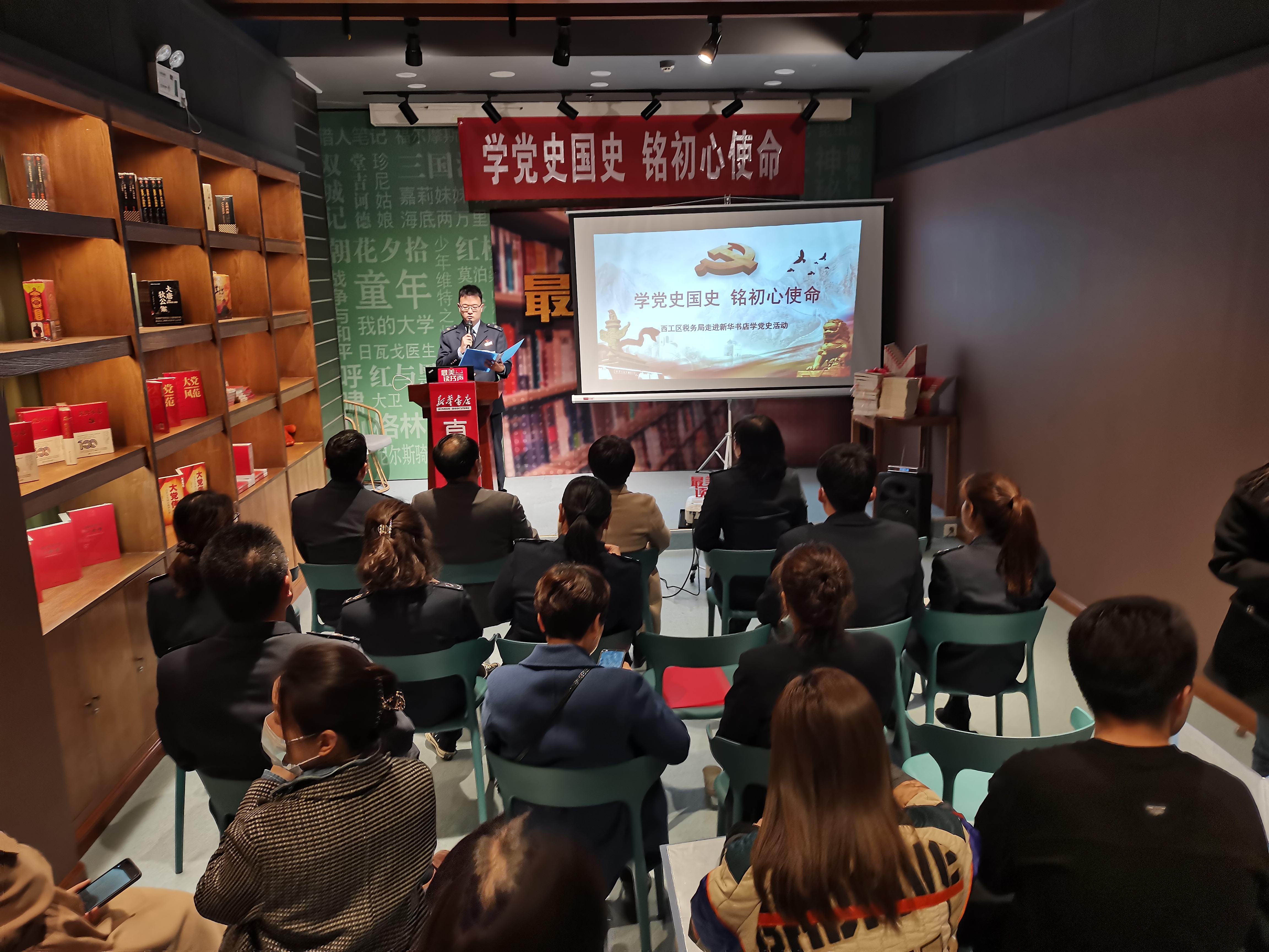 3月10日下午,洛陽市店和西工區(qū)稅務(wù)局在新華書店黨史學(xué)習(xí)教育基地聯(lián)合舉辦“學(xué)黨史國史 銘初心使命”支部聯(lián)建活動。黨員們學(xué)黨史、讀家書、誦詩歌、談心得,以支部聯(lián)建、交流互鑒的形式將黨史學(xué)習(xí)教育活動推向高潮。