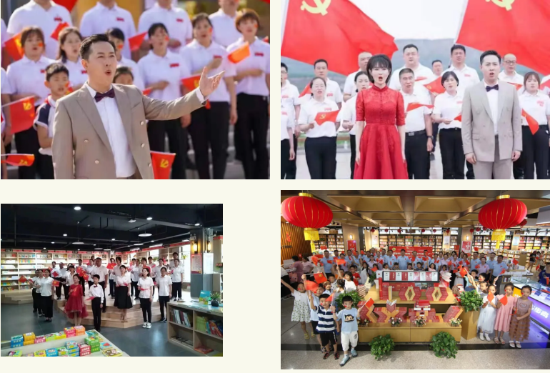 據(jù)介紹,本次快閃活動(dòng)由河南省新華書店策劃組織,省、市、縣三級(jí)聯(lián)動(dòng),發(fā)動(dòng)退伍老兵、在校師生等近萬(wàn)名讀者共同參與,采用誦讀紅色篇目和演唱愛(ài)黨歌曲相結(jié)合的方式在全省紅色地標(biāo)、新華書店及市民廣場(chǎng)等地開(kāi)展舉行。通過(guò)全省聯(lián)動(dòng)的活動(dòng)方式、高燃的濃厚喜慶氛圍,把我省慶祝中國(guó)共產(chǎn)黨成立100周年讀書活動(dòng)推向新高潮。