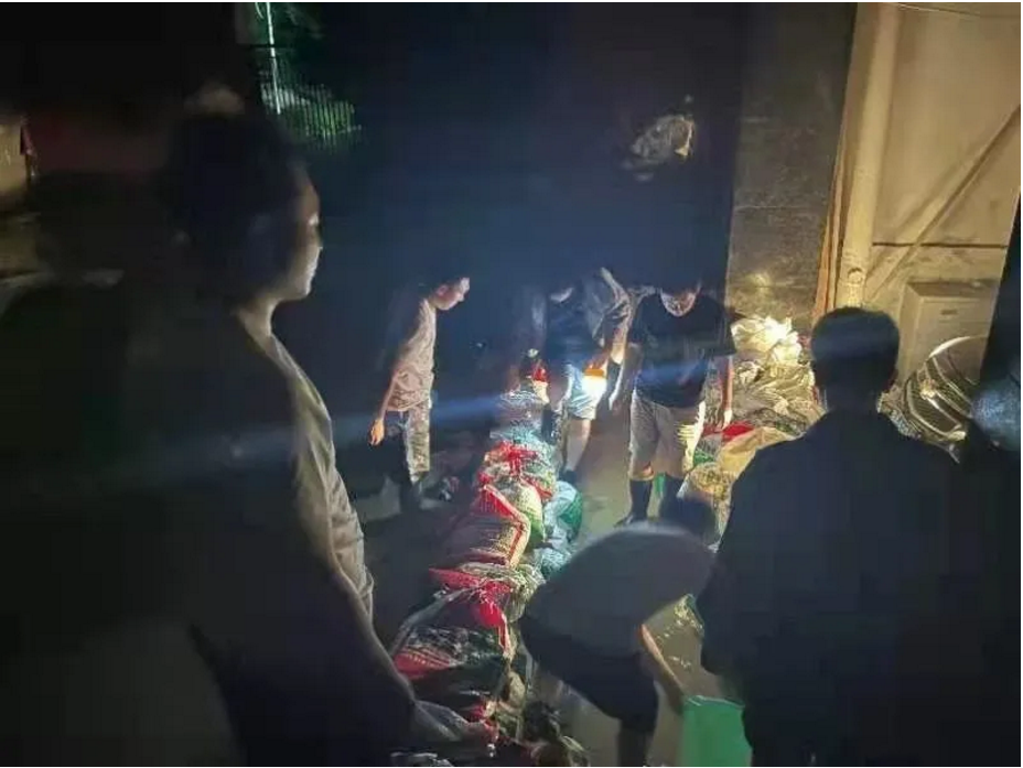 連日來,各地新華人齊上陣,想盡一切辦法,竭盡全力“搶救圖書教材”:冒雨鋪設(shè)抽水管道,赤膊上陣,雙手接力保教材……沒有什么能阻擋新華人搶救教材的步伐。