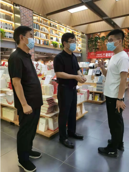 8月2日上午,集團(tuán)公司黨委副書(shū)記、副董事長(zhǎng)王大瑋一行先后到中原圖書(shū)大廈、省直書(shū)店、尚書(shū)房尚書(shū)苑店督導(dǎo)檢查疫情防控工作落實(shí)情況,并慰問(wèn)堅(jiān)守一線的職工,囑咐疫情期間做好個(gè)人防護(hù)。