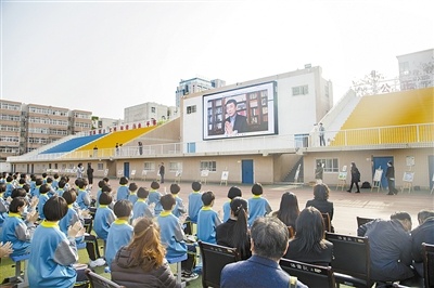 在視頻播放北京大學風光旖旎的校園春景的背景下,該校拉開了“同讀紅色《火印》,共上思政大課——曹文軒給市十中師生的一堂閱讀課”活動序幕。