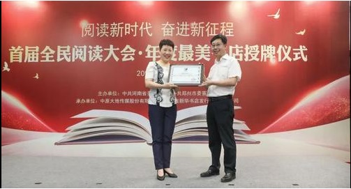 近日,首屆全民閱讀大會(河南)年度最美書店授牌儀式在鄭州市新華書店鄭州購書中心舉行,鄭州購書中心獲頒“年度最美書店”獎牌。本次授牌儀式由河南省委宣傳部、鄭州市委宣傳部主辦,中原大地傳媒股份有限公司、河南省新華書店發(fā)行集團有限公司承辦。