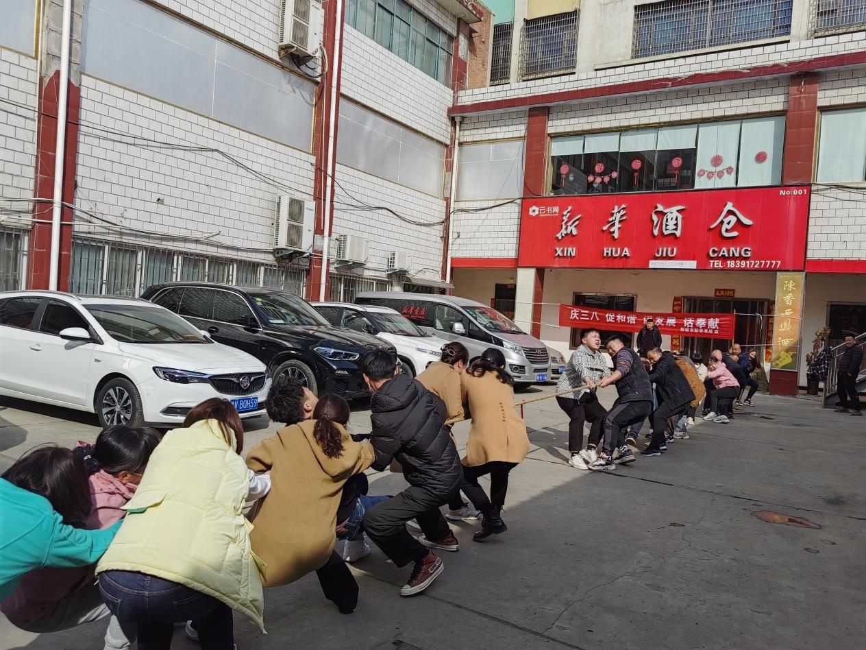 為迎接“三八婦女節(jié)”來(lái)臨,活躍節(jié)日氣氛,豐富職工的文化生活,增強(qiáng)職工的凝聚力。3月1日,新密店組織開(kāi)展拔河比賽、跳繩、踢毽子、跳棋、象棋、撲克等慶“三八”文體活動(dòng)。