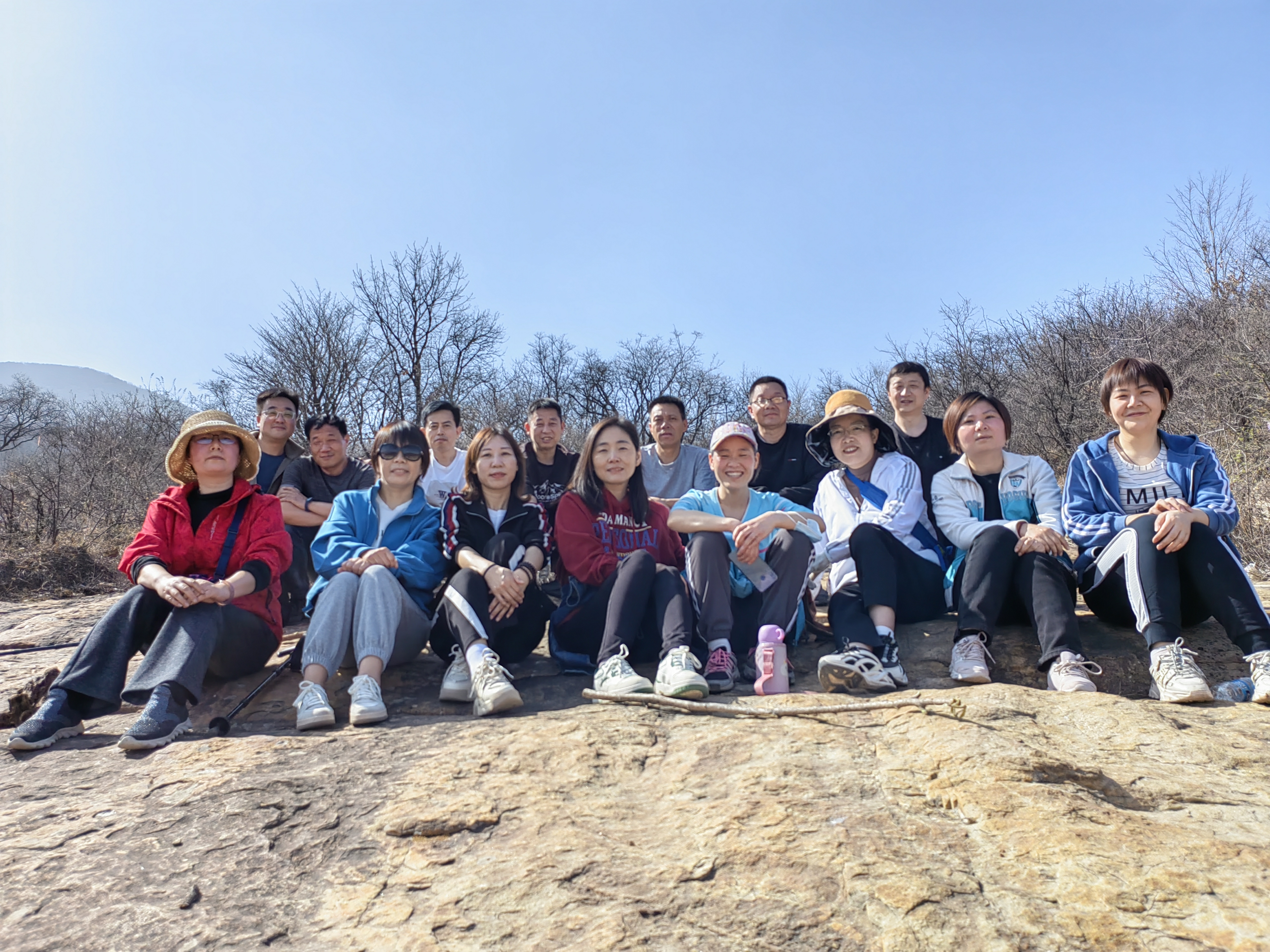 一個半小時的路程,我們順利到達(dá)登封,九點(diǎn)半登山活動正式開始。大家奮勇向前,歡快地向山頂進(jìn)發(fā)。一路上,有的職工閑庭信步,踏青賞春,放松心情;有的職工登高遠(yuǎn)眺,與好友合影留念。大家都精神抖擻、意氣風(fēng)發(fā)。山路越發(fā)陡峭,不少職工氣喘吁吁,但是,大家都發(fā)揚(yáng)不怕苦、不怕累的精神,相互鼓勵,共同攀登,沐浴在春日暖陽中,沉浸在登山的快樂里,每個人的臉上都洋溢著幸福和愉悅。兩個小時后,同志們?nèi)康巧仙巾敚谰氨M收眼底。