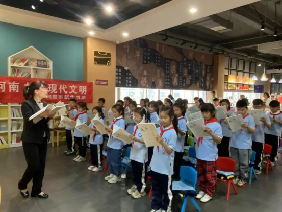 為切實(shí)帶動(dòng)全省讀者在共話(huà)閱讀之美、分享思想盛宴、文化實(shí)踐結(jié)合、文旅融合轉(zhuǎn)化中,推進(jìn)閱讀引領(lǐng)和文化吸引的影響力拓展至基層一線(xiàn)、各個(gè)領(lǐng)域,推動(dòng)廣大讀者特別是青少年兒童群體理解文化、熱愛(ài)閱讀,多家書(shū)店策劃開(kāi)展多層次、多品類(lèi)的文旅閱讀融合活動(dòng)。開(kāi)封市店以《清明上河圖—宋朝的一天》為基礎(chǔ),開(kāi)展開(kāi)封書(shū)城沉浸式閱讀研學(xué)實(shí)踐活動(dòng);新鄉(xiāng)市店聯(lián)合新鄉(xiāng)市外國(guó)語(yǔ)小學(xué)師生,創(chuàng)作并展演課間劇《開(kāi)學(xué)第一天》;洛陽(yáng)市店以書(shū)為紐帶,結(jié)合洛陽(yáng)深厚的歷史文化底蘊(yùn)和獨(dú)特的城市魅力,舉行集書(shū)香、文化、旅游于一體的盛宴,連接起愛(ài)讀書(shū)、愛(ài)生活的讀者朋友;信陽(yáng)市店圍繞大別山革命精神傳承宣傳,融合紅色文化和閱讀文化,為當(dāng)?shù)匚幕叩亟ㄔO(shè)和城市精神文明創(chuàng)建工作作出創(chuàng)新探索。