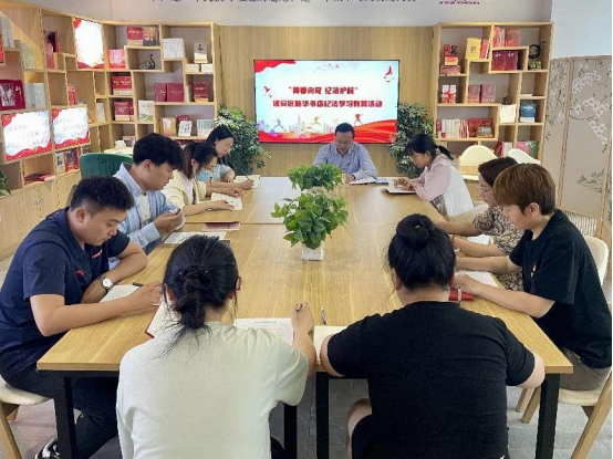 5月7日,建安區(qū)店組織年輕干部職工開展“青春向黨 紀(jì)法護(hù)航”紀(jì)法學(xué)習(xí)教育活動;顒又校嗄旮刹柯毠ぜw學(xué)習(xí)《中國共產(chǎn)黨紀(jì)律處分條例》、觀看警示教育片,深刻領(lǐng)悟黨風(fēng)廉政建設(shè)和反腐敗斗爭的艱巨性和重要性,并結(jié)合自身工作實際,暢談學(xué)習(xí)感悟;顒幼詈箝_展黨紀(jì)學(xué)習(xí)教育知識答題環(huán)節(jié),檢驗學(xué)習(xí)成果,推進(jìn)黨紀(jì)學(xué)習(xí)入腦入心、落實見效。