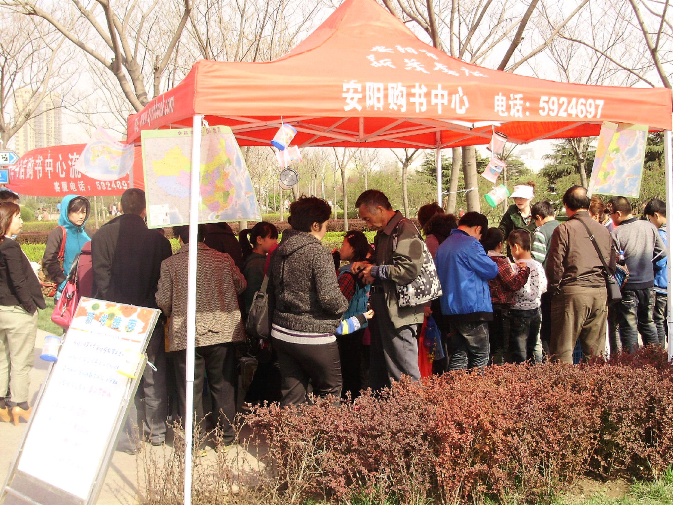 為給力全民閱讀,挖掘市場潛力,提升圖書銷售,在2012年國際兒童圖書日期間,安陽市新華書店購書中心積極與安陽市少年兒童圖書館和安陽市易園聯(lián)合,精心挑選圖書組成流動書店,利用清明節(jié)三天假期,到兩館廣場和易園為廣大讀者朋友提供優(yōu)惠售書服務(wù)。