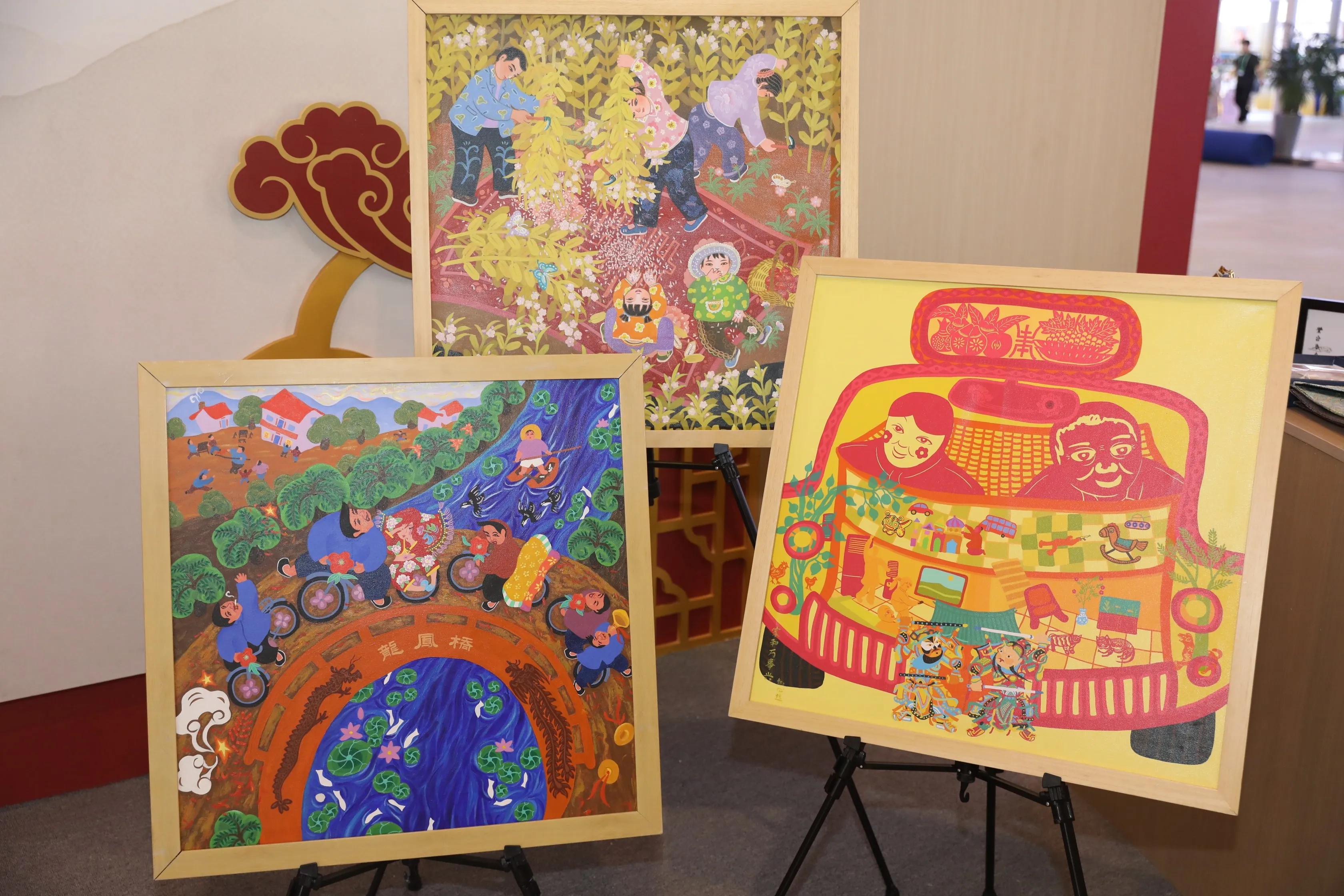 在展館的另一角,舞陽農(nóng)民畫以其獨(dú)特的藝術(shù)魅力吸引著眾多觀眾。河南電子音像出版社副總編李亞楠介紹,圍繞這一省級非遺項(xiàng)目,他們打造了“一本畫冊、一套課程和一個(gè)微紀(jì)錄片”的項(xiàng)目矩陣。