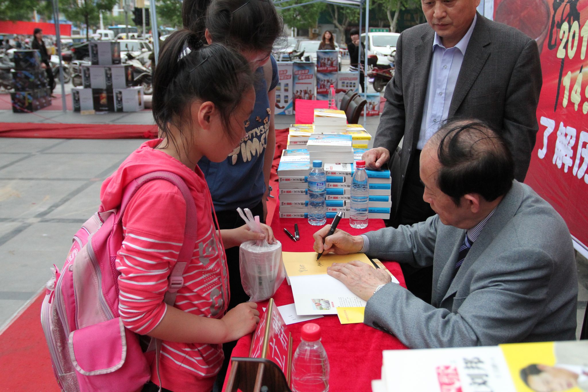 簽售過程中,王立群教授一直耐心與讀者交流,并詳細(xì)詢問讀者的姓名,仔細(xì)的簽在書的扉頁,助手遞到他手上的水都沒顧上喝一口。炎熱的天氣,擋不住讀者的熱情,有些讀者手中少則兩三套書,多則十幾套,他們表示購書簽名是為了送給親戚朋友!八蛶Ш灻臅毁F,有保存價(jià)值、有品位!币晃蛔x者對記者說。有一位老者是王立群教授的忠實(shí)粉絲,他的所有作品全部都有,并且都拿到了現(xiàn)場簽名,老者激動地說:“有幸拿到王立群教授簽過名字的書,太高興了”。原計(jì)劃兩個(gè)小時(shí)的簽售活動,因?yàn)樽x者太多,又延長了半個(gè)小時(shí)的時(shí)間,整個(gè)簽售過程共為讀者簽售三百多套圖書。