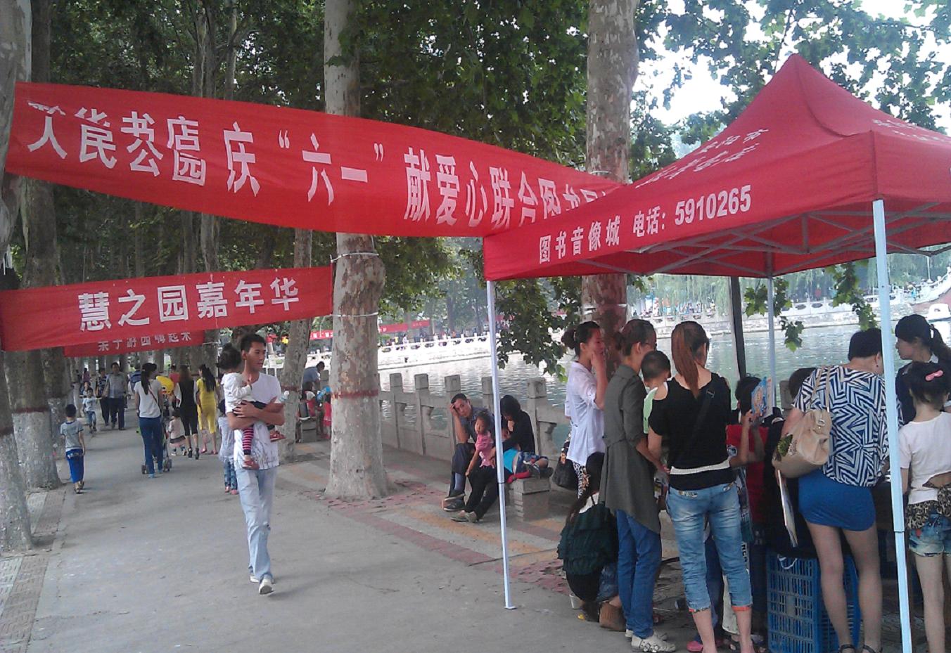 為慶!傲弧眹H兒童節(jié),安陽市店圖書音像城積極和市人民公園聯(lián)系,在6月1日到6月3日期間,聯(lián)合舉辦了為期三天的慶“六一”獻(xiàn)愛心圖書大展銷活動。