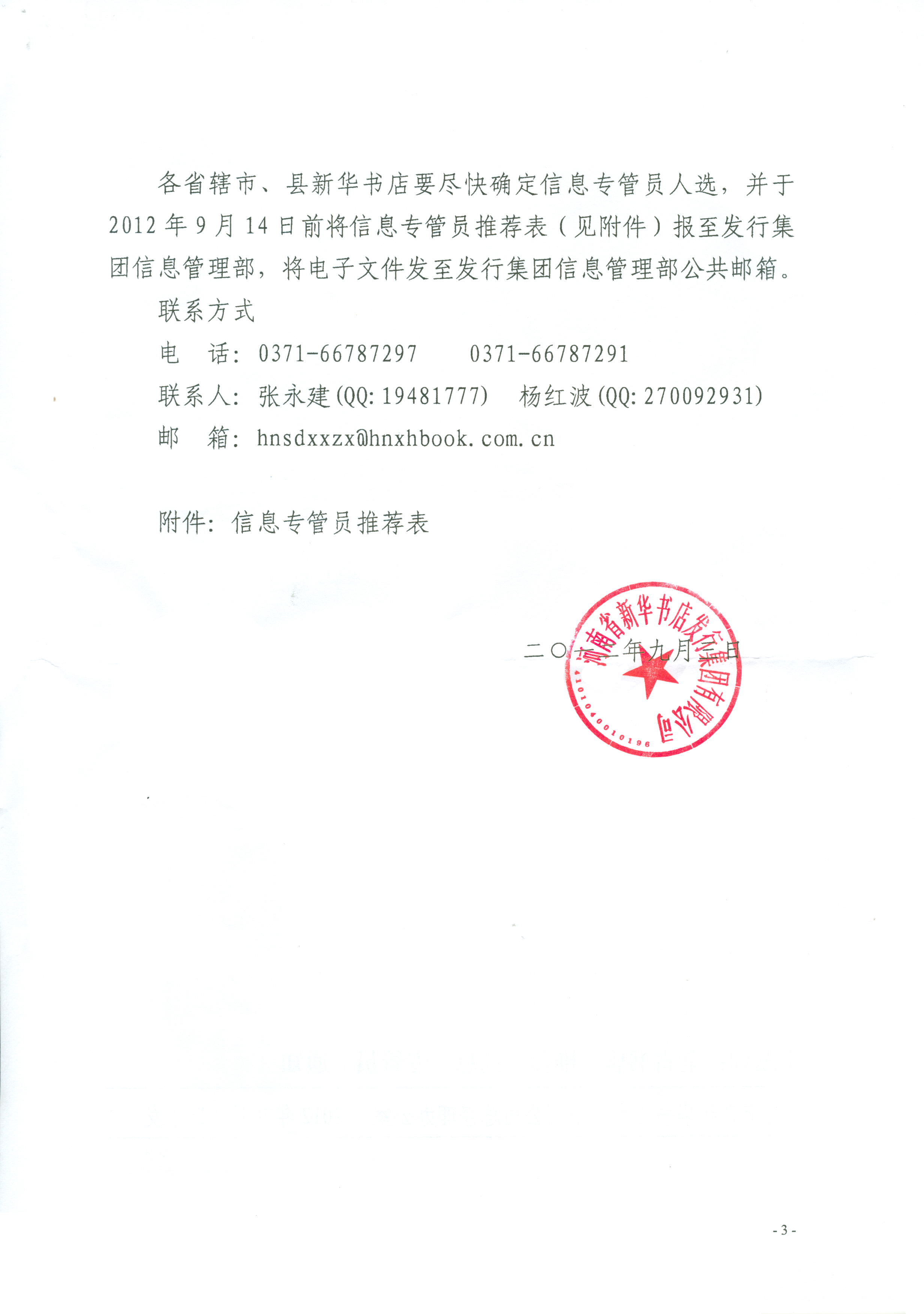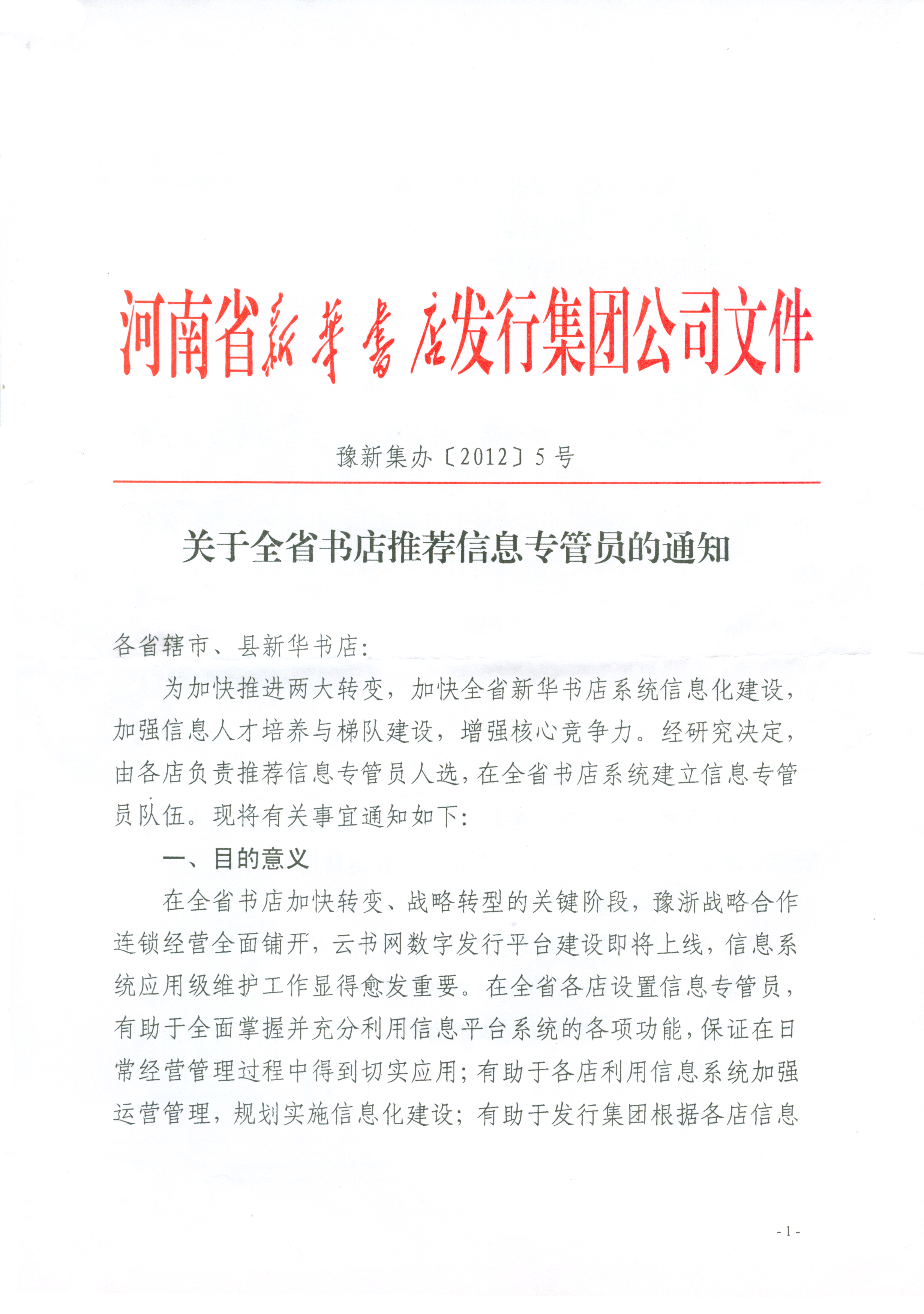 關(guān)于全省書店推薦信息專管員的通知