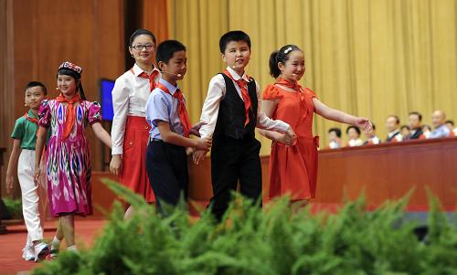 這是少先隊員代表向大會獻(xiàn)辭。