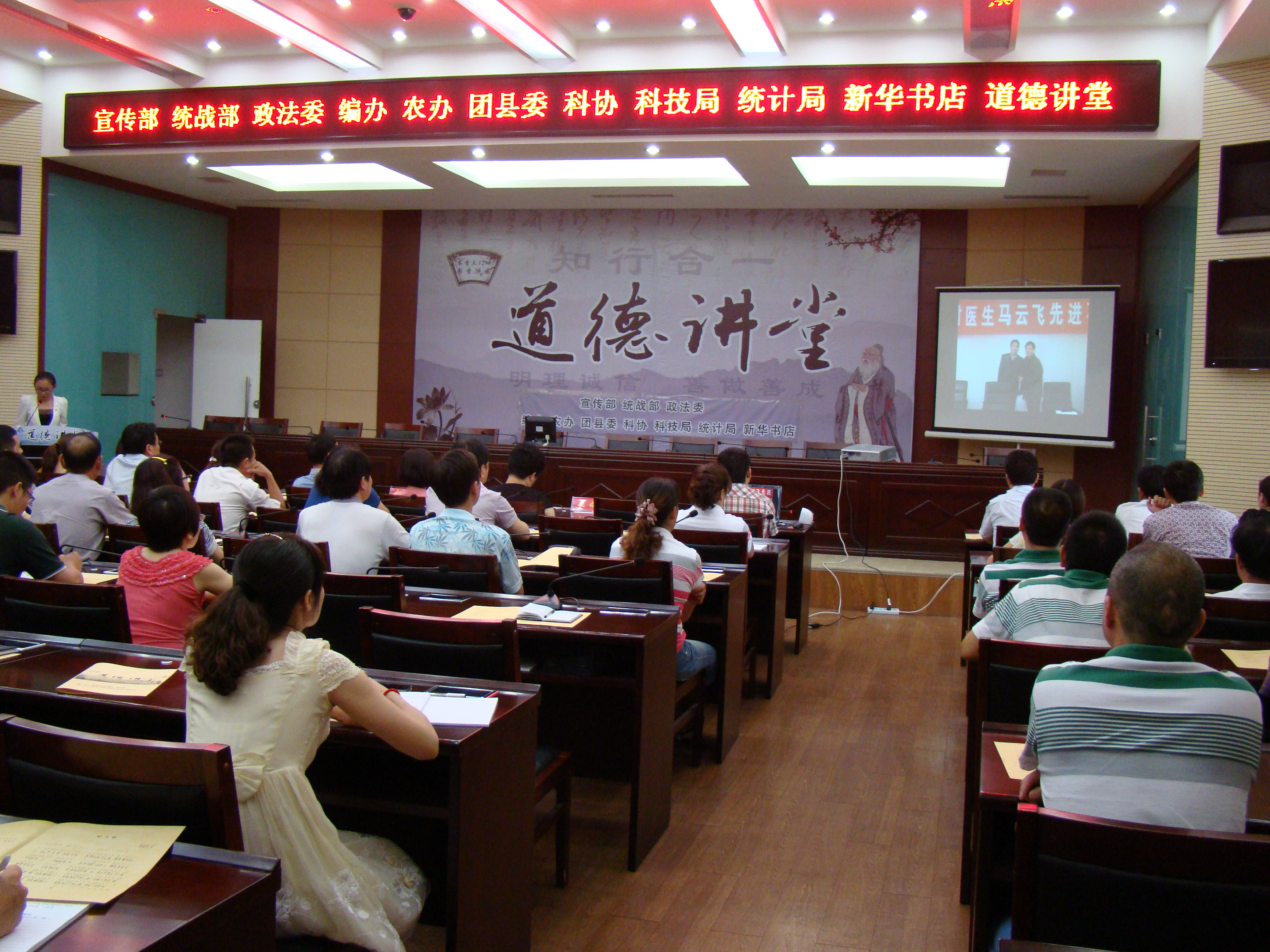 日前,陜縣縣店組織員工參加陜縣舉辦的“道德講堂”活動;顒釉凇逗萌烁琛酚茡P(yáng)的旋律中拉開帷幕,大家一起觀看了《2012年感動中國十大人物之何玥》的感人視頻,傾聽了全國最美鄉(xiāng)村醫(yī)生--陜縣宮前鄉(xiāng)馬云飛的感人事跡,吟誦《道德經(jīng)》中的經(jīng)典片段,觀看政務(wù)禮儀關(guān)于精神面貌的注意事宜,參與發(fā)起“學(xué)雷鋒精神,做有愛心的人”的承諾,活動在大家領(lǐng)取吉祥如意的中國結(jié)和福娃中圓滿結(jié)束。