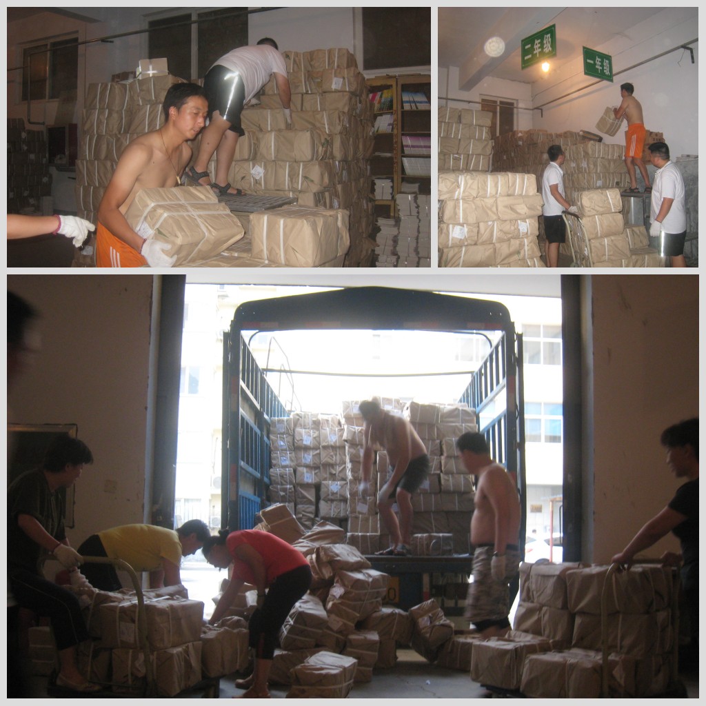 目前,2013秋季教材的發(fā)運(yùn)工作已經(jīng)步入了高峰期,為了達(dá)成“課前到書,人手一冊”的目標(biāo),衛(wèi)輝市店業(yè)務(wù)科全體員工加班加點,犧牲節(jié)假休息時間,頂著高溫?zé)崂嘶蛘弑┯暌u擊等惡劣天氣,全身心投入到教材、教輔的發(fā)運(yùn)工作中。雖然大家臉頰上冒著汗珠,甚至有的光起了膀子,但樂此不疲的勁頭展現(xiàn)了朝氣蓬勃、團(tuán)結(jié)向上的精神面貌。據(jù)該店員工表示,等到中小學(xué)生開學(xué)時,手捧一本本嶄新的教材,滿心幸福的笑聲充盈著整間教室,我們再苦再累也是值得的!