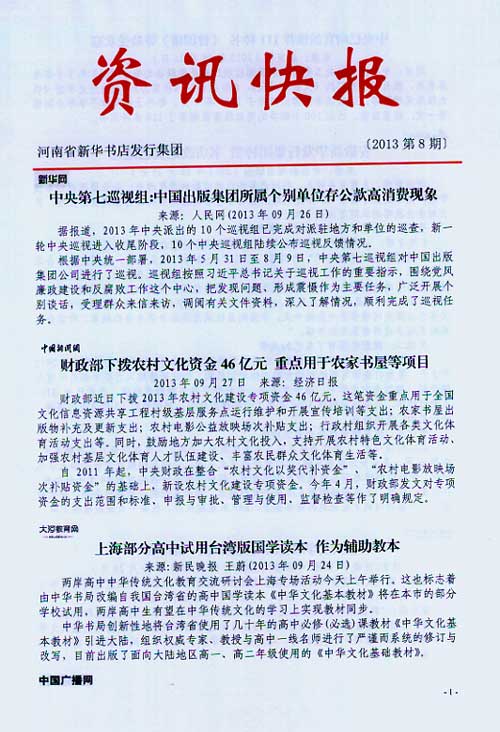來(lái)源:河南省新華書(shū)店發(fā)行集團(tuán)有限公司  作者:河南省新華書(shū)店發(fā)行集團(tuán)有限公司  發(fā)布時(shí)間:2013/9/27 14:16:17  閱讀次數(shù):7517