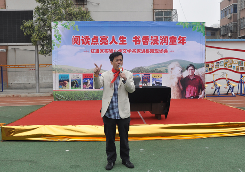 沈石溪老師每來到一所學校,均受到了學校師生的熱烈歡迎,學校少先隊員代表還為沈老師系上了紅領巾、送上鮮花、行隊禮。在演講過程中,沈石溪結合自己從16歲初中畢業(yè)赴西雙版納插隊、在云南整整生活了36年的生活歷程,以一例例生動的事例,生動、真實再現(xiàn)了人與自然、動物與自然和諧相處的場景,同與會師生分享了自己在西雙版納生活期間與動物接觸的親身經歷和創(chuàng)作這些動物小說的生活靈感,沈石溪老師以詼諧幽默的演講,經常會博得大家熱烈的掌聲,隨著演講的深入,臺下師生時而驚嘆,時而捧腹,時而歡呼。
