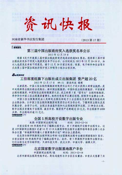 來源:河南省新華書店發(fā)行集團(tuán)有限公司  作者:河南省新華書店發(fā)行集團(tuán)有限公司  發(fā)布時(shí)間:2013/12/23 12:32:11  閱讀次數(shù):8188