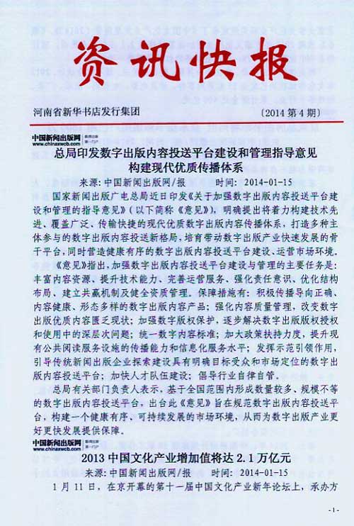 來源:河南省新華書店發(fā)行集團(tuán)有限公司  作者:河南省新華書店發(fā)行集團(tuán)有限公司  發(fā)布時間:2014/1/17 9:54:31  閱讀次數(shù):9304