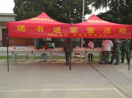 為了積極響應(yīng)2014年河南省“全民閱讀”活動(dòng)的號(hào)召,營(yíng)造文明社會(huì)、書香社會(huì)的文化氛圍,倡導(dǎo)全民閱讀的生活方式,宛城區(qū)店開展了“送書進(jìn)軍營(yíng)”展銷活動(dòng)。