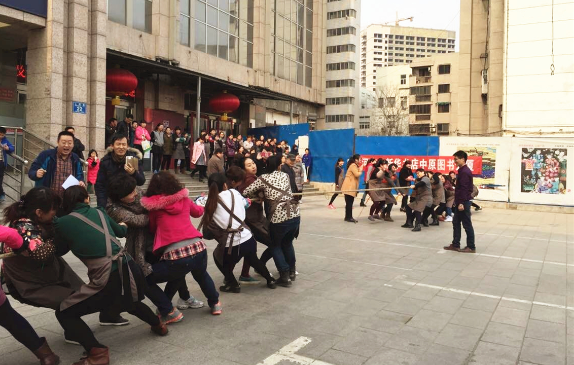 慶!叭·八”婦女節(jié),豐富職工的精神文化生活,增強凝聚力和團體合作精神,中原圖書大廈201538下午,舉辦了女員工拔河比賽。