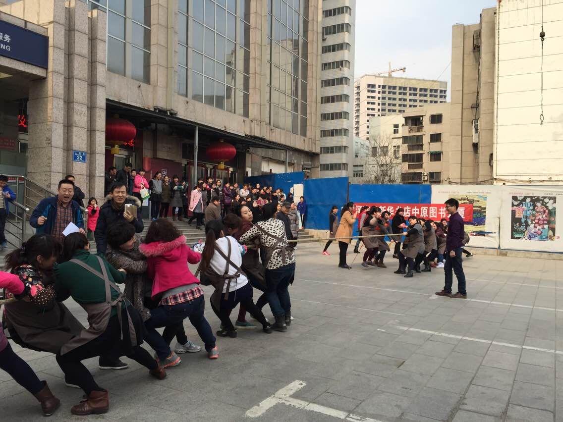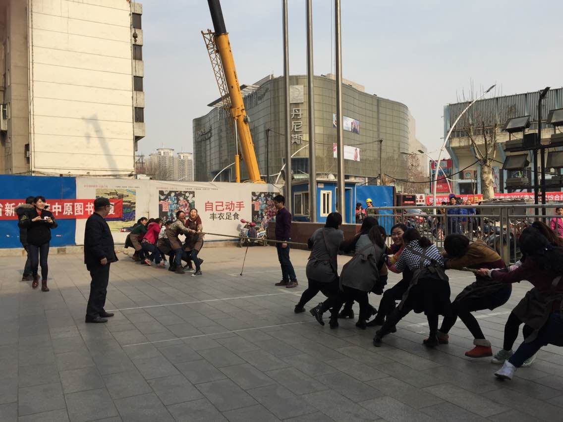 為慶!叭ぐ恕眿D女節(jié),豐富職工的精神文化生活,增強(qiáng)凝聚力和團(tuán)體合作精神,中原圖書大廈工會(huì)分會(huì)于2015年3月8日下午3點(diǎn),舉辦了女員工拔河比賽。