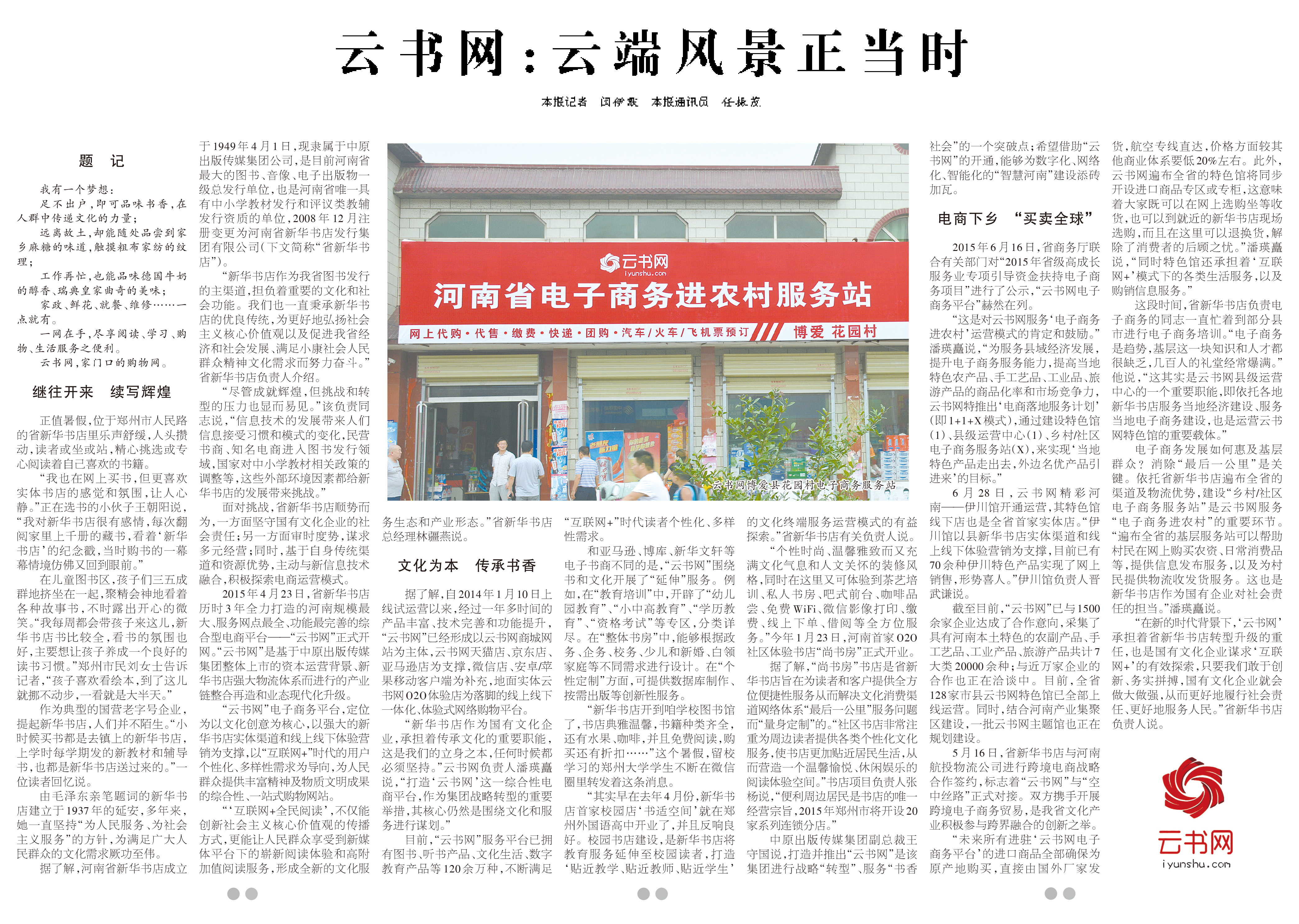 8月5日《河南日報(bào)》封底整版,對云書網(wǎng)電商下鄉(xiāng)助推縣域經(jīng)濟(jì)再次進(jìn)行宣傳報(bào)道。